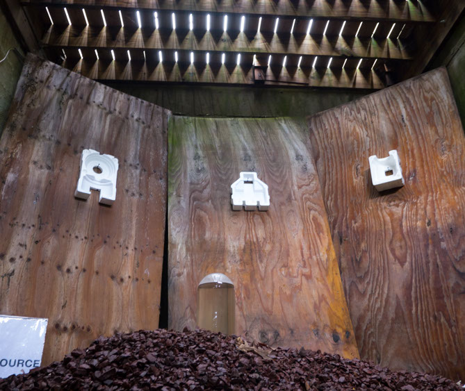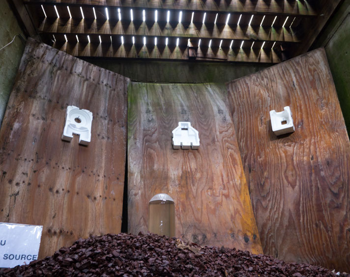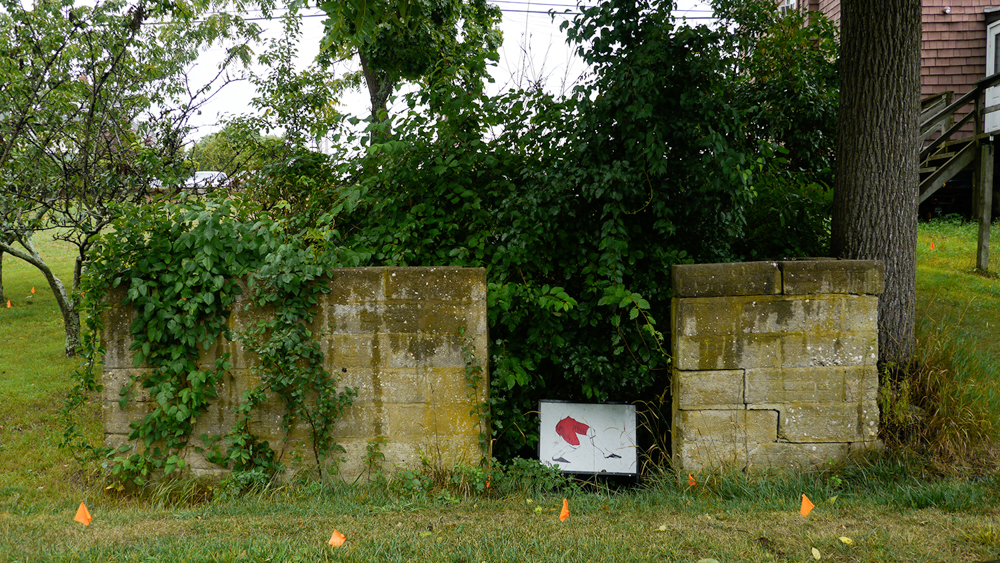 An installation that incorporating environmental elements from the delta of Riverhead. It was a positioning of an itinerant sort dangling from the edges of hyper-reality. There were two locations - 1. under exterior stairs and 2. the house foundation carcass to left of Artsites main building.