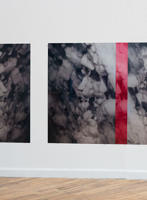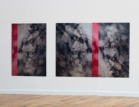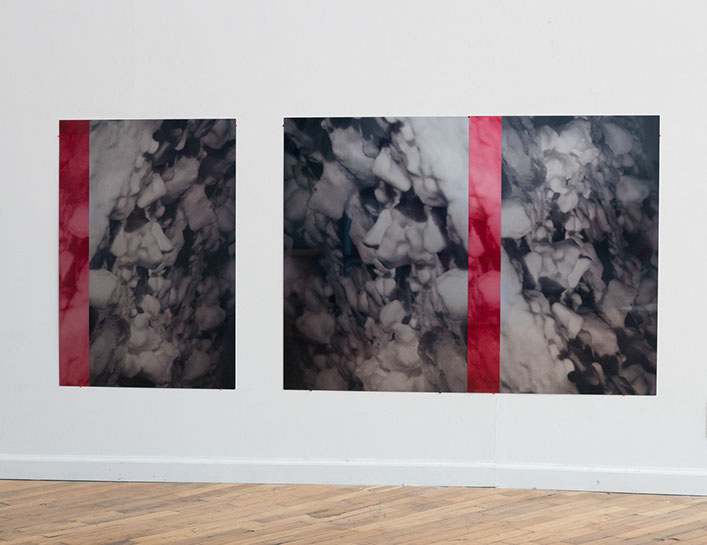 Red Line, 2018, three photographic metal panels, 40 x 90 inches