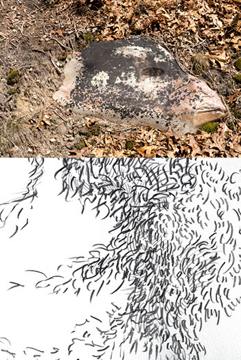 Acteaon - 2018 right detail, photo on metal 80" x 96"