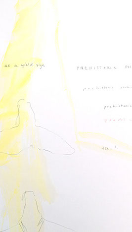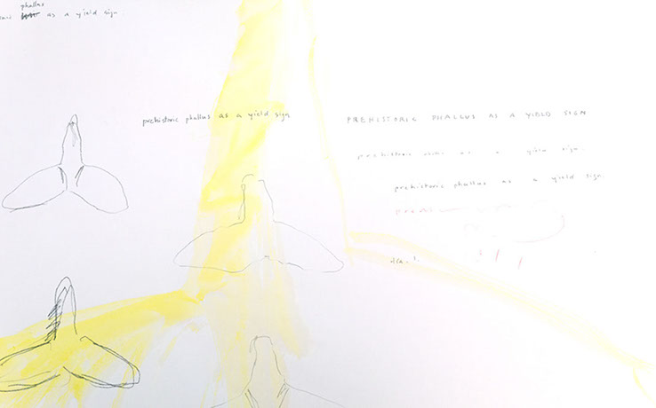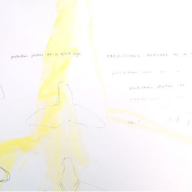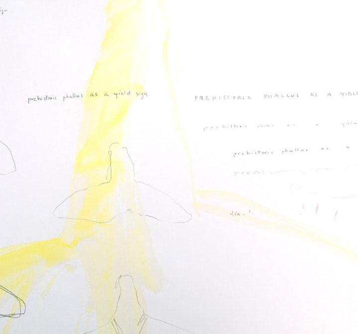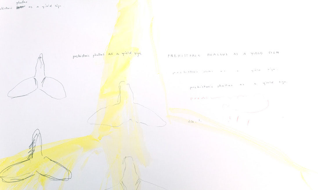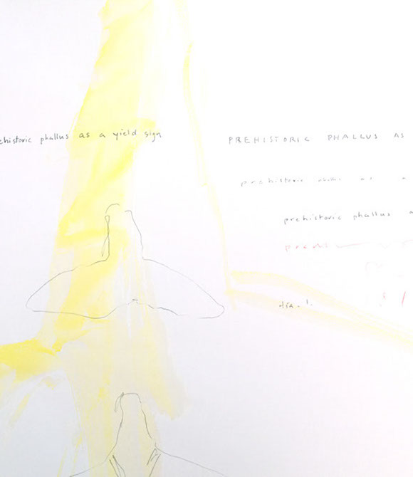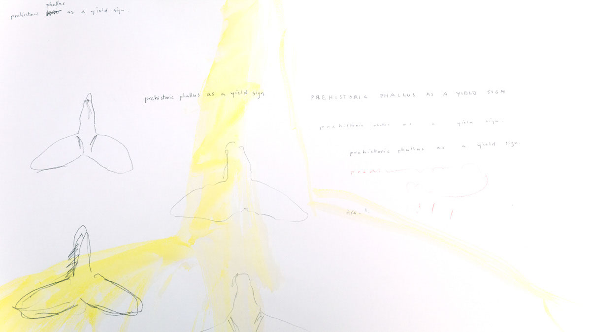 prehistoric phallus as a yield sign, 2014, drawing and waterolor, 24 x 30 inches