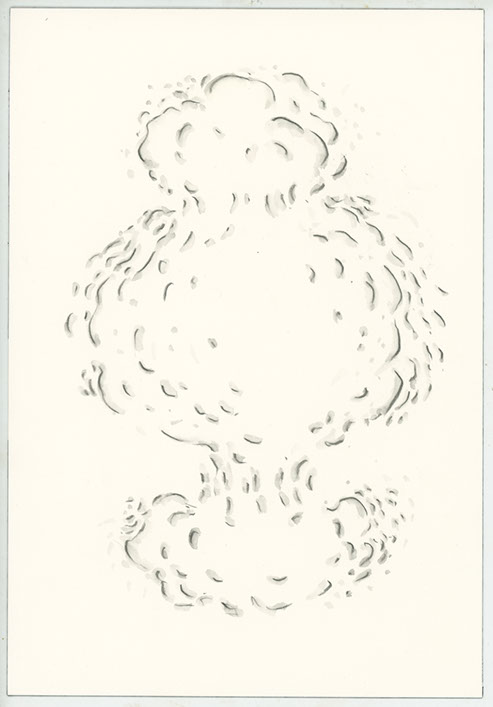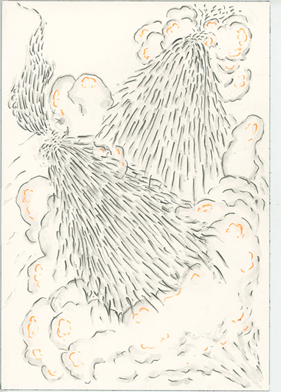 Blam 2021 graphite, wash, brush, neon pencil and slver paint 14 x 11"