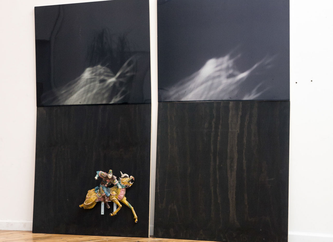 Acteaon - 2018 photos on metal, plywood, found object . 80" x 96"