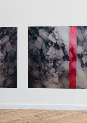 Red Line, 2018, three photographic metal panels, 40 x 90 inches